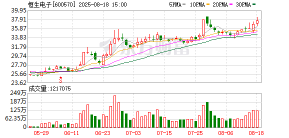 证券时报·数据宝统计清楚,恒生电子本日收盘价为37.65元,上升2.14%,日换手率为6.43%,成交额为45.64亿元,全上帝力资金净流出4550.69万元,近5日该股累计上升7.08%,近5日资金共计净流出1.34亿元。
